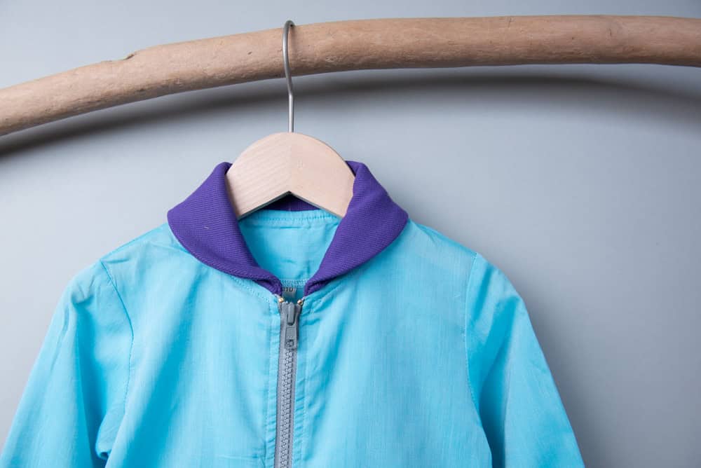 防曬輕外套-微領拉鍊-訂製 衣身水藍vs其他紫色羅紋 貝貝彬